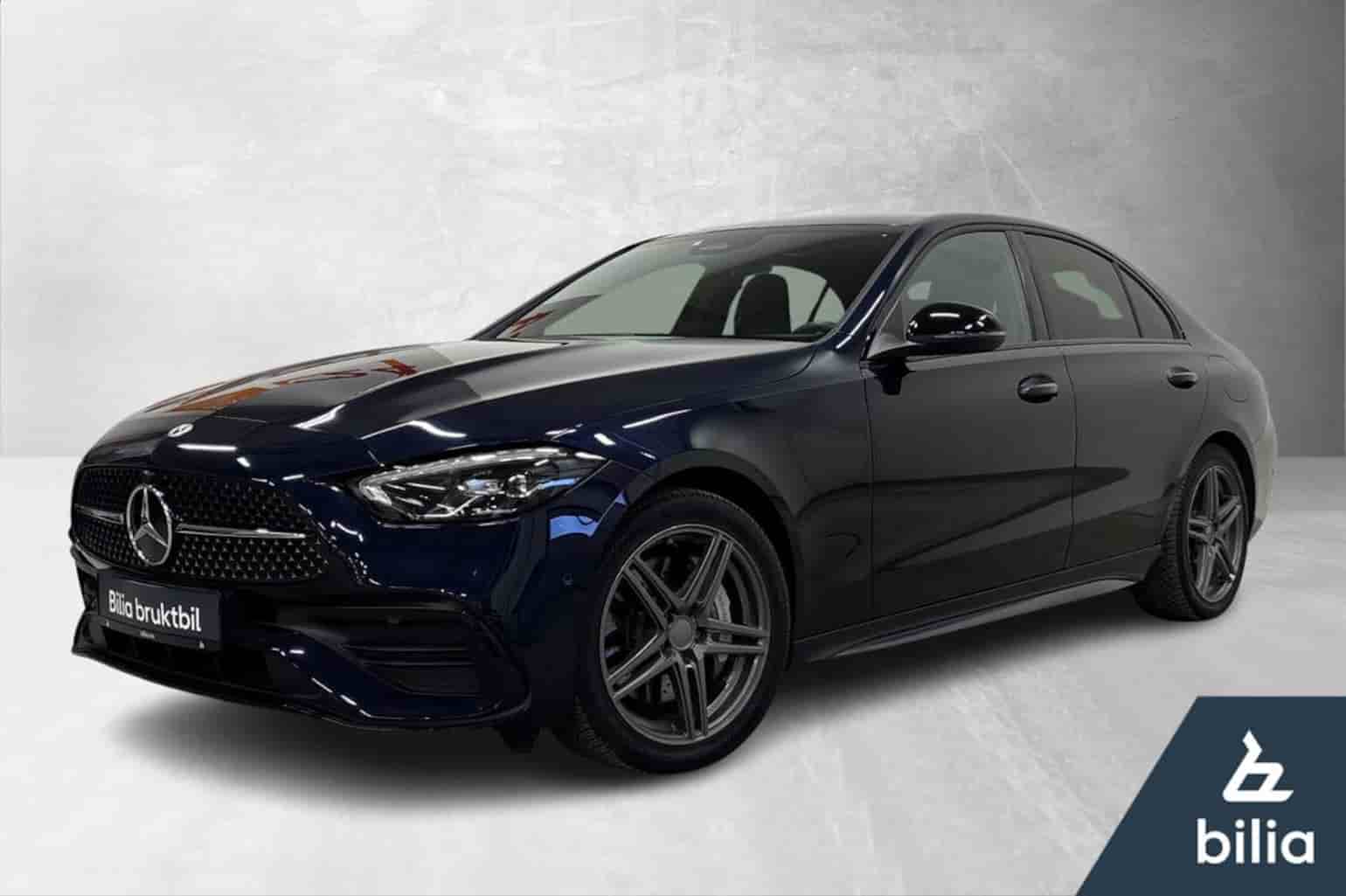 Rålekker 2022 Mercedes C300e Plug-in hybrid med hele 109km WLTP i blå metallic med delskinn interiør.