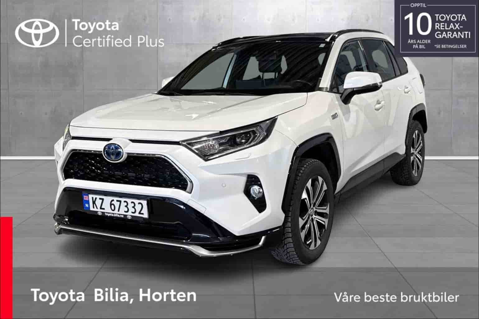 Toyota Horten har fått inn en strøken Toyota RAV4 Plug-in Hybrid – en fro SUV som kombinerer elektrisk rekkevidde, effektivitet og moderne komfort i én robust pakke. Denne bilen gir deg det beste fra to verdener: elektrisk kjøring til hverdags og bensinkraft på lengre turer, med firehjulsdrift som gir deg trygghet uansett føre. Med “Active tech”, panoramatak og JBL-lydanlegg får du en opplevelse som løfter både kjøreglede og komfort. I tillegg har bilen registerkjede, som gir deg ekstra bekymringsfri drift.