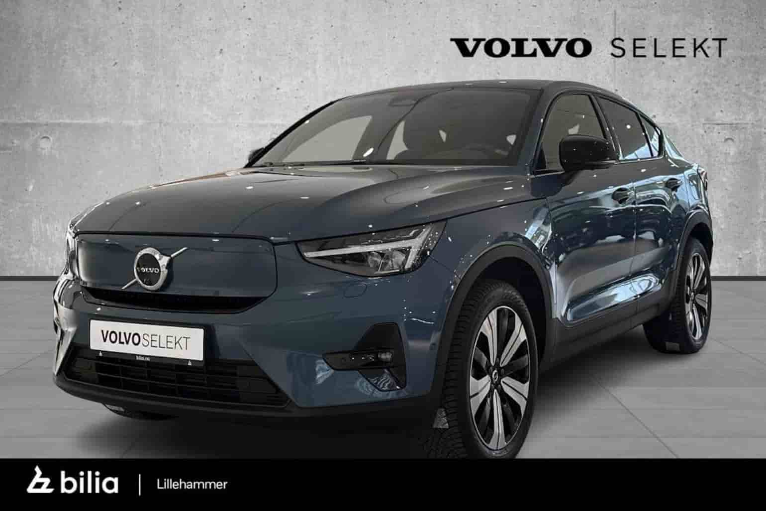 Kjempefin 2023 Volvo C40 Twin Ultimate med automat og firehjulstrekk i fargen Fjord blue har ankommet Bilia Lillehammer. C40 er en sporty bil med en elektrisk rekkevidde på hele 415km (WLTP) som kan hurtiglades fra 20-80% på ca 30 minutter. Det har kun vært en eier og det medfølger komplette hjul for sommer og vinterbruk samt full servicehistorikk.