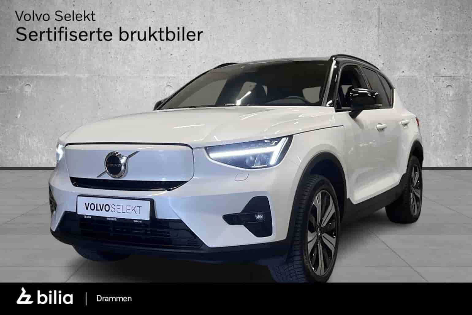 Nok et fint eksemplar av den populære elbilen Volvo XC40 i fargen Krystal hvit Metallic!