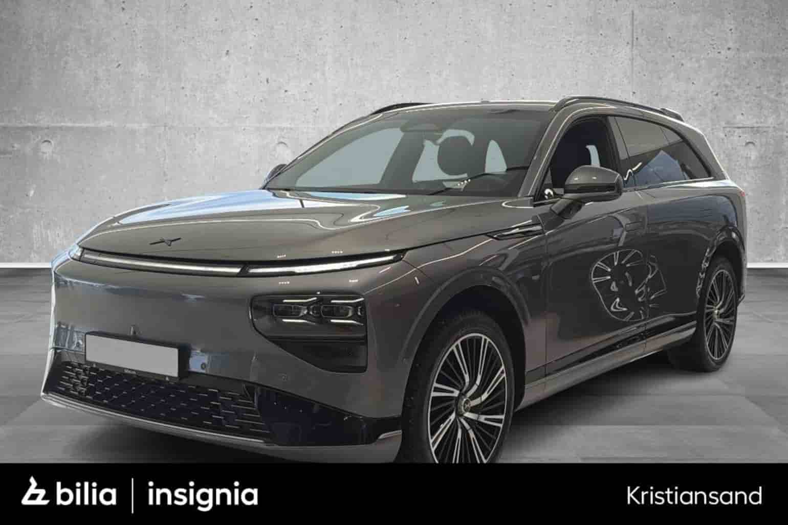 2024 Xpeng G9 med to elmotorer, firehjulstrekk og grå metallic lakk. Stor og komfortabel SUV med luftfjæring, moderne assistentsystemer og ryddig infotainment. Lader med inntil 300 kW DC, som under gode forhold kan gi 10–80 % på omtrent 20 minutter. Elektrisk utfellbart hengerfeste på 1 500 kg og 1 eier før oss.